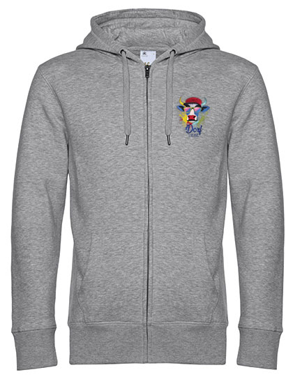 Du liebst das Dorfleben, aber möchtest nicht auf urbanen Streetstyle verzichten?Dann ist der Zipper-Hoody "DorfLiebe" genau dein Ding! In vielen Farben und mit auffälliger Stickerei der kultigen Kuhmit Sonnenbrille und Cappy bist du überall ein echter Blickfang - egal ob beim Doffest oder in der City.