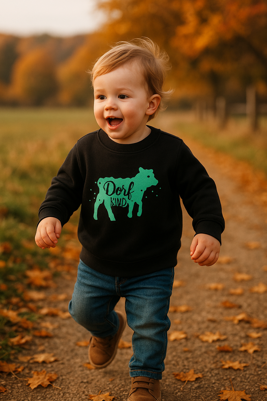 Klein, frech und absolut liebenswert - das Sweatshirt "DorfKind" ist genau das Richtige für alle Dorfkinder, die das Landleben