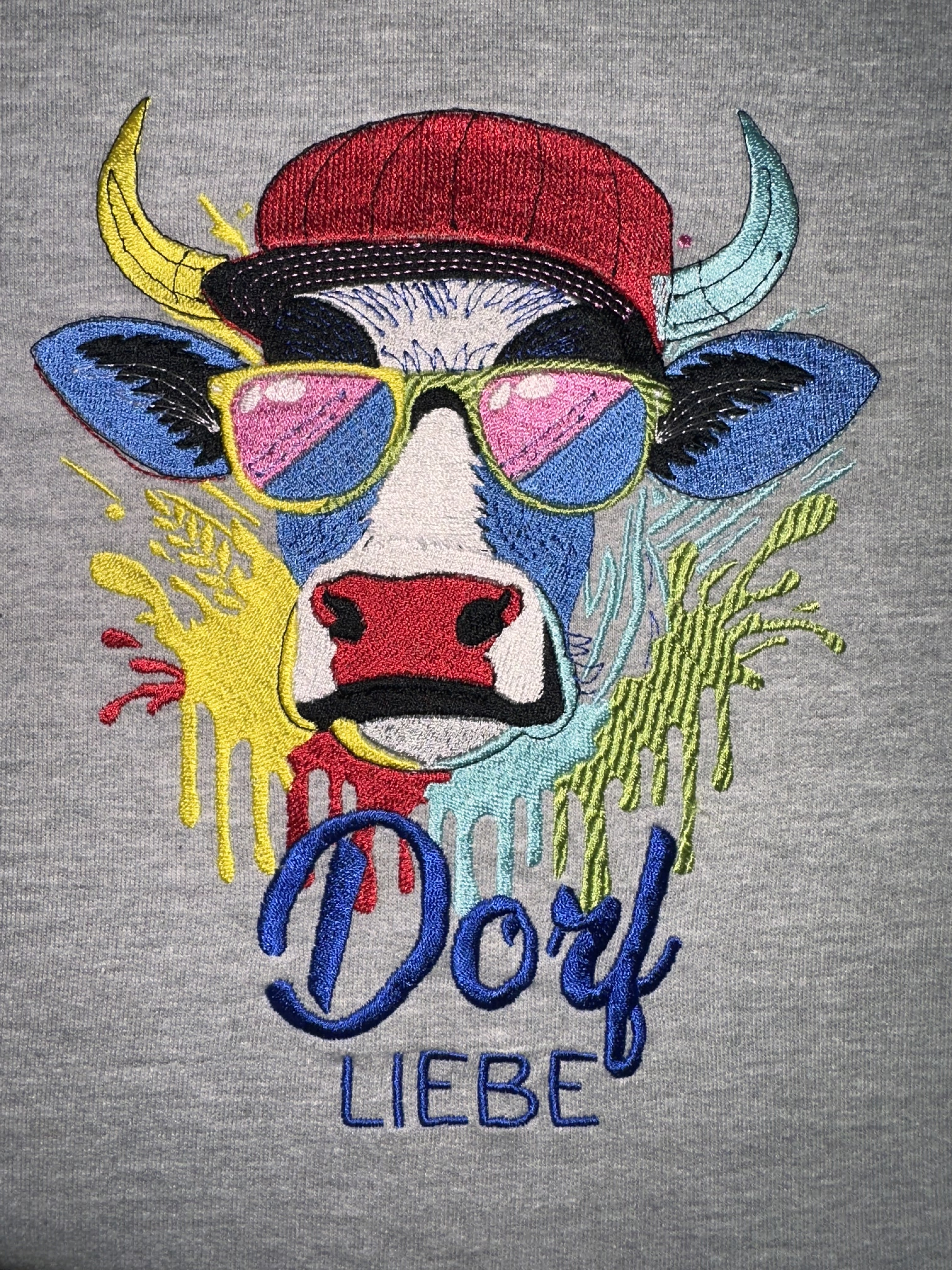 -hochwertige Stickerei "Kuh - DorfLiebe"